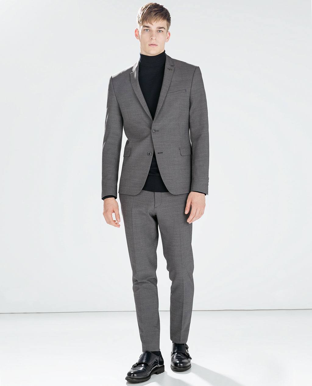 Zara es sin duda una de las firmas que mejores propuestas, y a un precio asequible, tiene para la Nochevieja, si en la imágen anterior vimos un esmokin muy elegante de H&m, en esta foto de arriba vemos como la firma de Inditex también se decanta por un “look” algo menos sofisticado y aunque el blazer es elegantísimo, también hay que destacar el acierto de combinarlo con un jersey de cuello cisne de los que ya hemos dicho, que era una de las grandes tendencias de la temporada de otoño invierno actual.