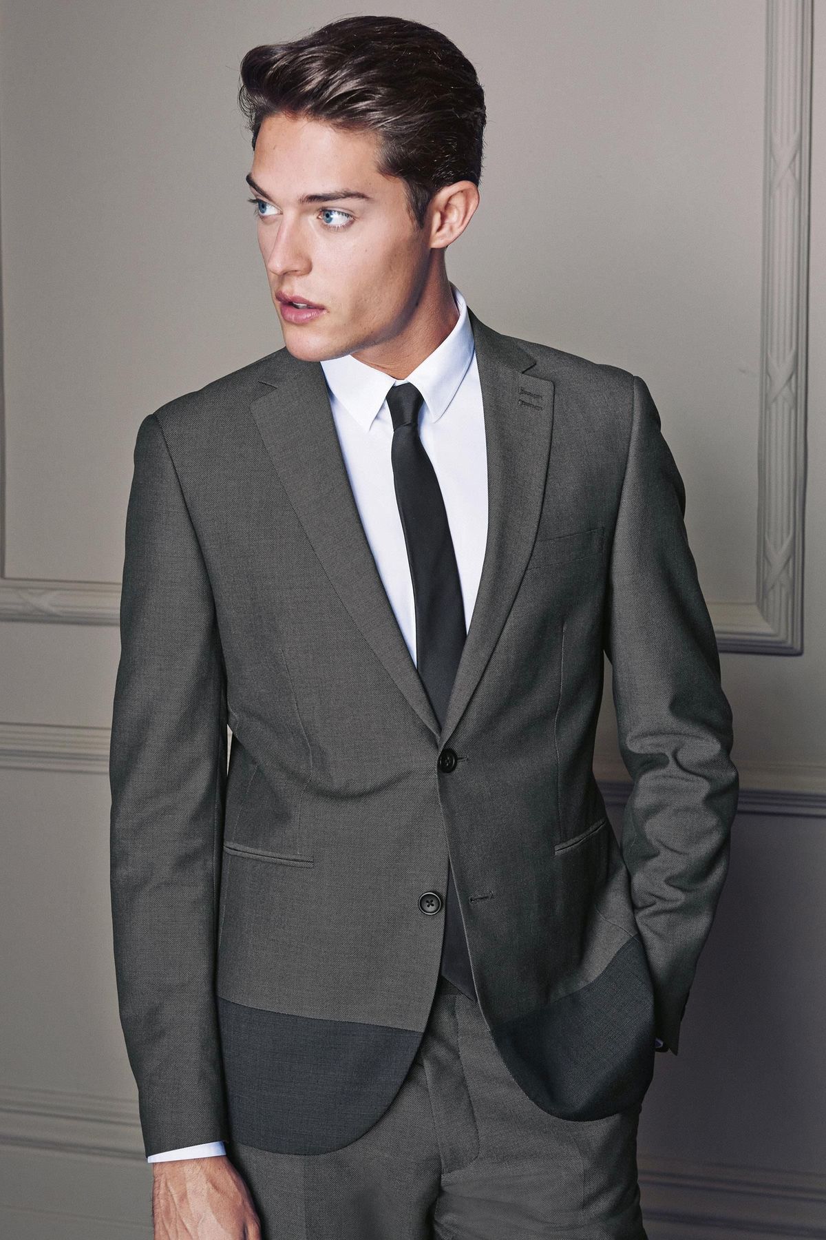 Sin duda alguna los trajes serán los grandes protagonistas en la Nochevieja de este y en lo que a moda Masculina se refiere. Si bien las corbatas son el complemento ideal para dichos trajes, podéis optar por un modelo similar al de la imágen superior. Un traje de la firma Next con blazer a dos tonos (gris y negro) y camisa de seda que queda espectacular y a la vez muy moderno. Para este traje es esencial el uso de corbata como os digo pero si lo lleváis sin ella tampoco pasa nada, el traje es tan espectacular que queda bien como sea.