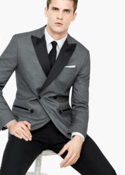 A la hora de elegir tu “look” de Nochevieja debes apostar por algo que sea especial pero tampoco es necesario abandonar del todo tu estilo. Si lo que quieres es un buen traje, adelante ya que será una apuesta segura, pero a veces basta con un buen blazer y te costará mucho menos encontrar el estilismo perfecto. Por ejemplo si te decantas por un blazer de corte esmokin en gris, como este de Mango, seguro vas a estar elegantísimo si lo llevas con un pantalón de vestir negro que ya tengas, una sencilla camisa blanca y una corbata a juego.