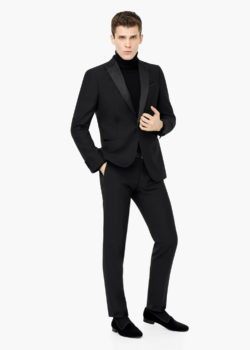 Otro estilo de traje es este que propone Mango dentro de su campaña “evening”, que está dedicada a la moda para la última noche del año. Esta firma apuesta por los trajes en los que las camisas y las camisas se dejen de lado, y apuestan por un elegante “total look” en negro con el cuello vuelto. Es un estilo algo más moderno pero también muy acertado si tenemos en cuenta que durante todo el invierno, el uso de jerséis de cuello vuelto va a ser una de las tendencias más fuertes.