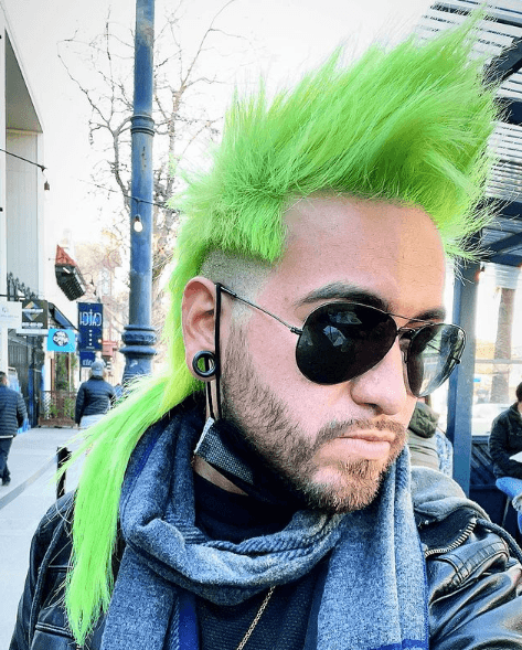 Obviamente, quienes apuestan por el mullet para hombres modernos en, no tienen problema con el color de su pelo. Esto permite fantasías como este pelo verde fosforito, con tupé infinito y laterales afeitados, absolutamente arrollador.