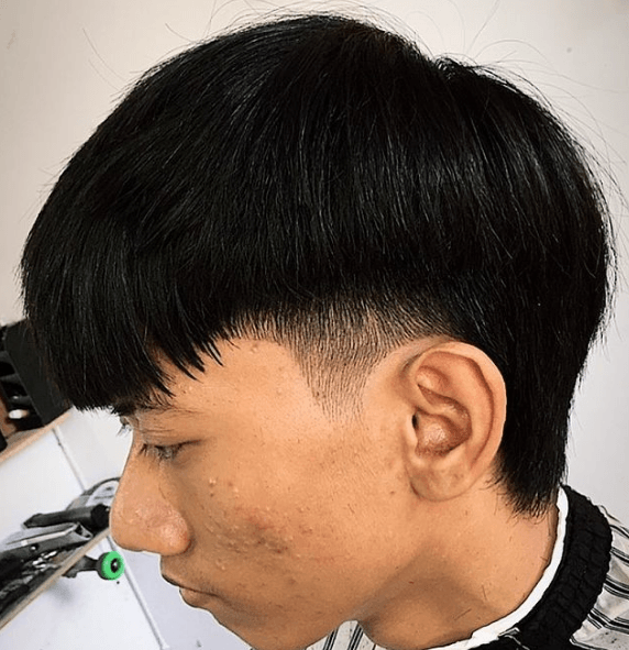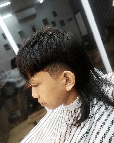 Otra opción de mullet para hombres modernos en muy vintage es aprovechar el pelo liso para hacer un tazón pero con el pelo largo por detrás.