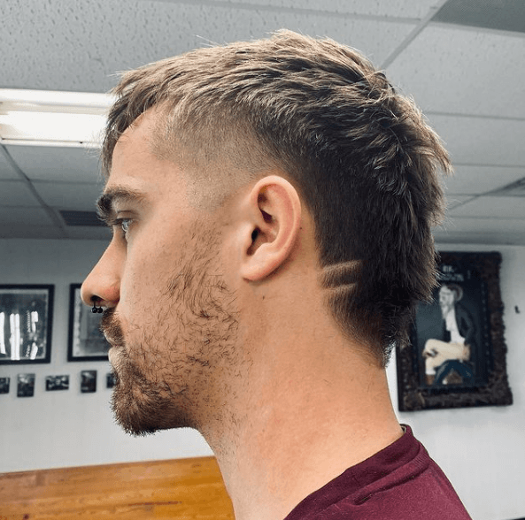 Si quieres ir poco a poco con tus mullet para hombres modernos en, puedes comenzar con los laterales rapados y una cresta despeinada en lo más alto de tu cabeza.