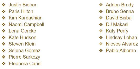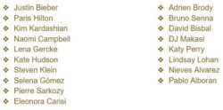 Así Philipp Plein cuenta entre otros con clientes del mundo del deporte, futbolistas de la talla de Messi, Ronaldo o el boxeador Mayweather, corredores de Fórmula 1 como Bruno Sena, políticos, actores, actrices, cantantes, presentadores, etc, todo un elenco de Celebrities de la talla de: