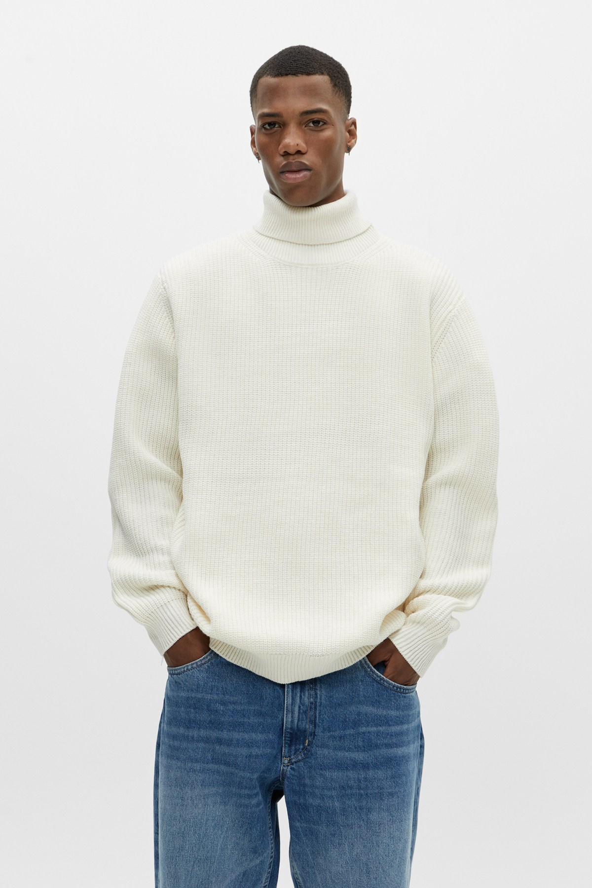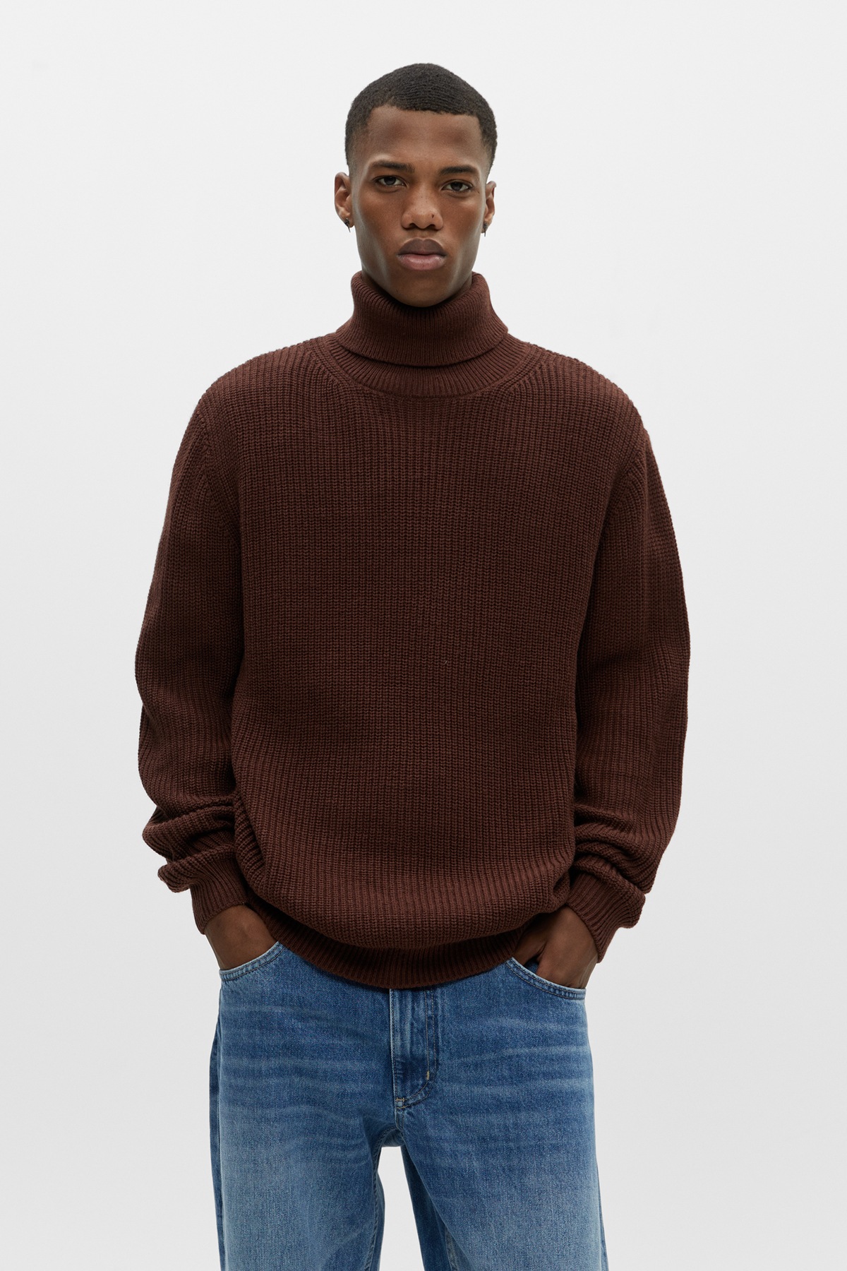 Al margen de los jerséis que tienen estampado navideño y que podéis llevar ya antes de que se celebre la Navidad, las novedades de Pull & Bear para esta temporada incluyen también varios jerséis y sudaderas que no podéis dejar escapar. Es el caso por ejemplo de cuello alto de punto brioche que se vende además en distintos colores como el blanco o el marrón.
