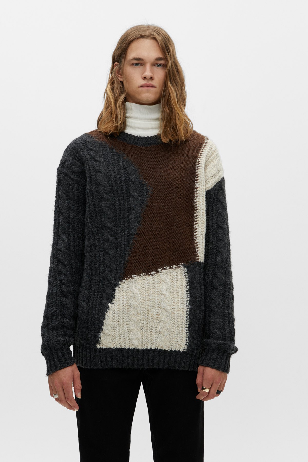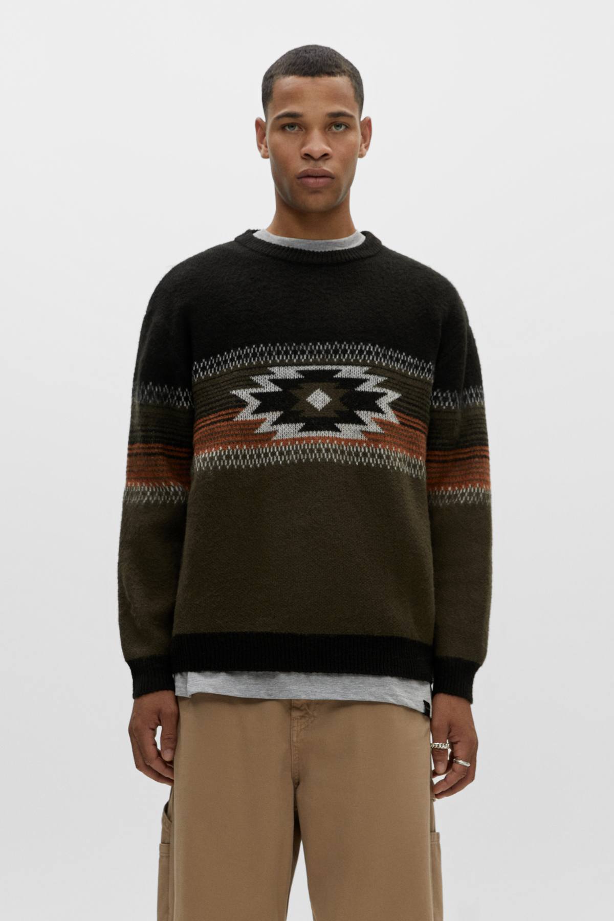 Y en el caso de que te vayan los jerséis estampados, parece que la apuesta de Pull & Bear para esta Navidad, y todo el invierno, son los modelos de “print” geométrico, los que tienen cierto aire vintage y los del tipo color block. Modelos como estos que ves a continuación.
