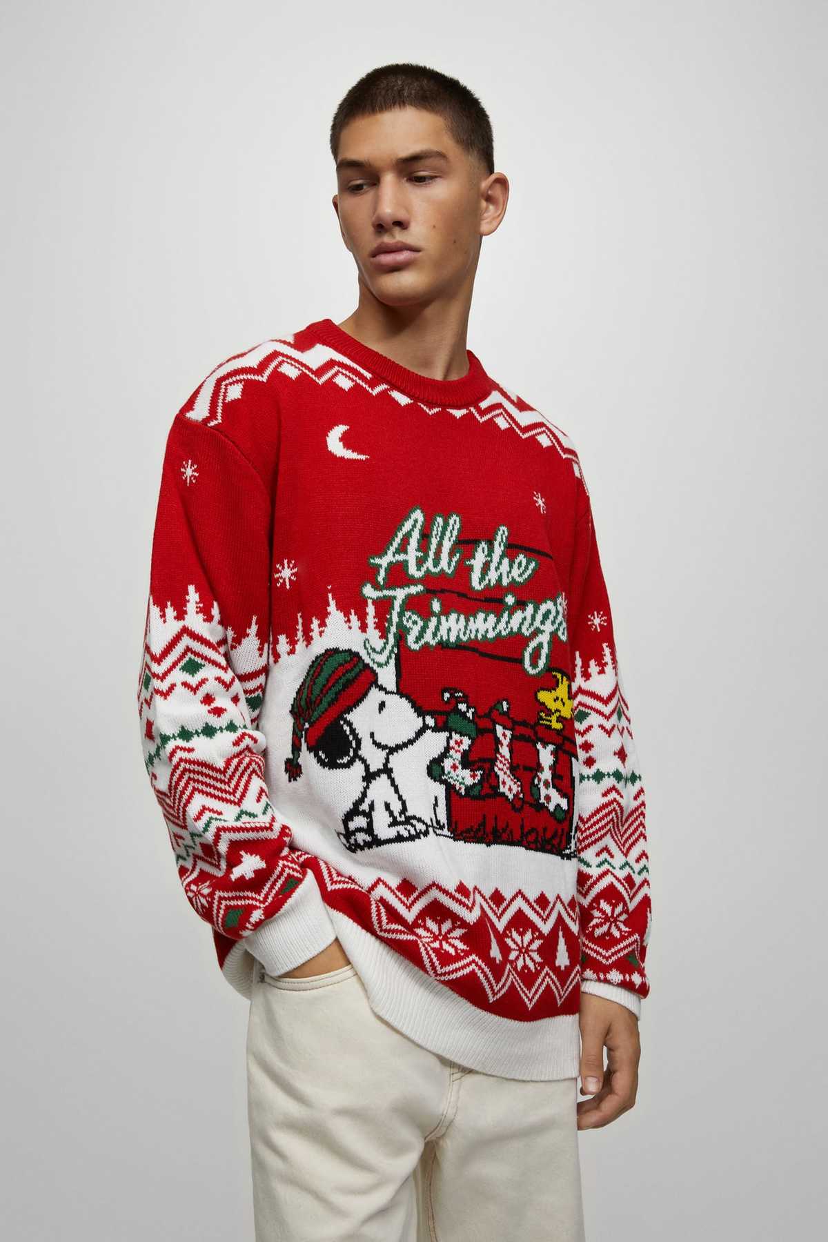 Comenzamos este repaso al catálogo de Pull & Bear para la Navidad hablando de jerséis pero en concreto, aquellos que cuentan con motivos y estampados navideños. Jerséis divertidos que os podéis poner los días previos a que se celebre la Navidad o en la misma cena de Nochebuena.