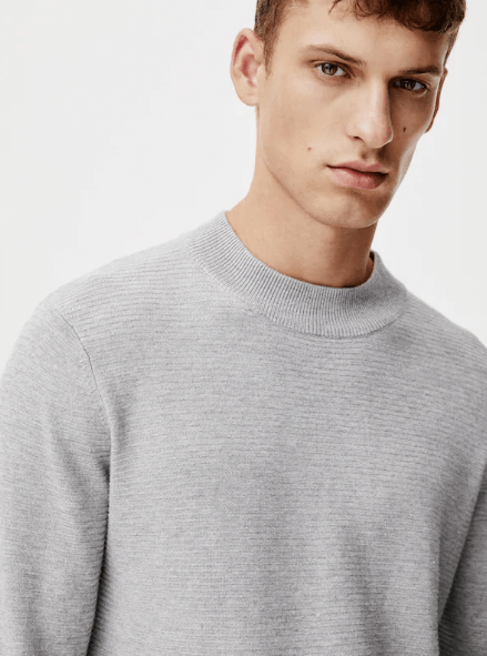 También de cuello alto, tenéis el jersey de punto básico, más fino que los anteriores y perfecto para combinar con una camisa por ejemplo. Disponible en varios colores.