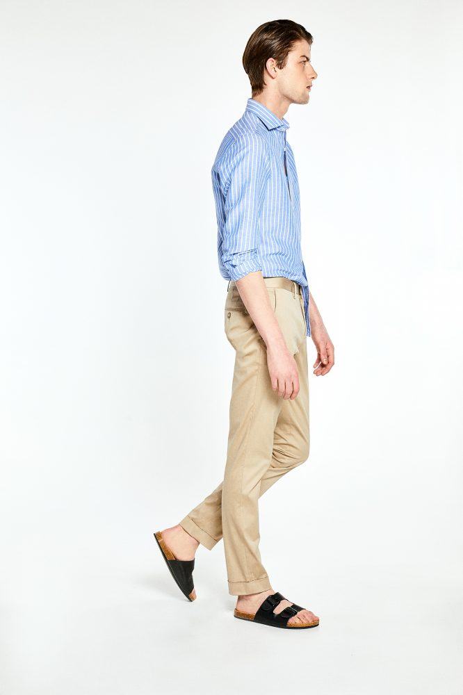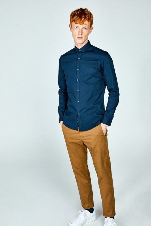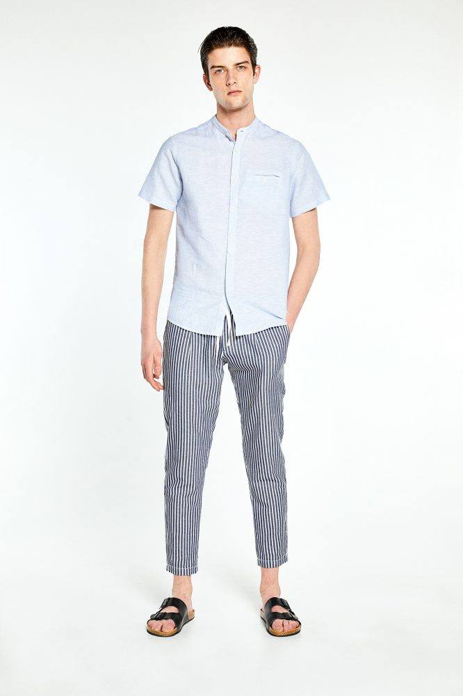 Anota también las camisas de cuello mao en tonos suaves como el azul. Una tendencia que te costará mucho menos cuando empiecen las rebajas.