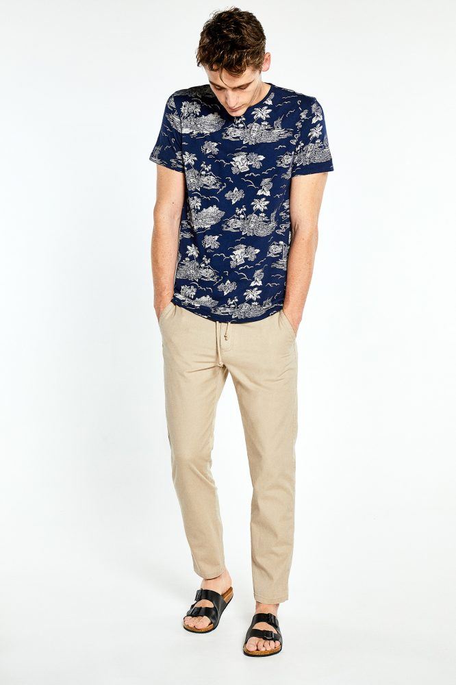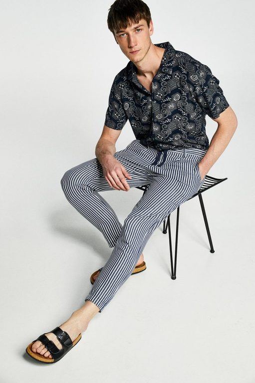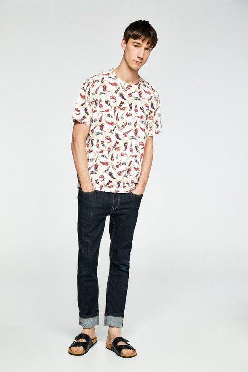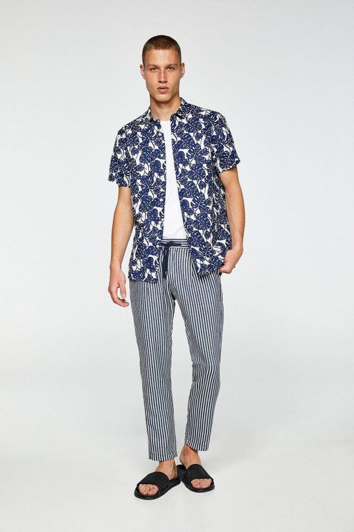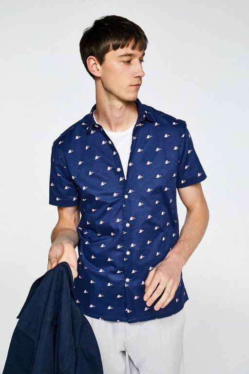 Comenzamos nuestro repaso a las que serán rebajas de verano Sfera para hombre hablando de las camisas y camisetas que vas a poder encontrar con grandes descuentos, en torno al 30-40%. En lo que respecta a camisas, la media de estas suele estar entre los 20 y los 30 euros, pero algunos modelos estarán incluso rebajados a mitad de precio cuando comiencen las rebajas. No puedes dejar escapar entonces las camisas estampadas, como el modelo de camisa fluída con estampado tropical o la camisa con microestampado.