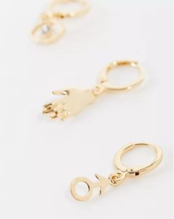 Y si lo que buscáis son modelos de pendientes que sean algo más modernos o no tan pegados a los primeros pendientes para hombre que se llevaron, nada como elegir entre los modelos que ahora os mostramos que podéis encontrar en la tienda online de Asos. Entre ellos, nada como elegir por ejemplo el modelo de inspiración “vintage” con detalle de perla y en plata, los pendientes de aro en dorado con varios diseños colgantes o también, los pendientes de botón que tienen un original diseño de una cara sonriente y otra triste.