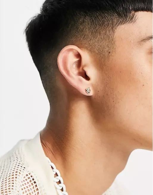 Y si lo que buscáis son modelos de pendientes que sean algo más modernos o no tan pegados a los primeros pendientes para hombre que se llevaron, nada como elegir entre los modelos que ahora os mostramos que podéis encontrar en la tienda online de Asos. Entre ellos, nada como elegir por ejemplo el modelo de inspiración “vintage” con detalle de perla y en plata, los pendientes de aro en dorado con varios diseños colgantes o también, los pendientes de botón que tienen un original diseño de una cara sonriente y otra triste.