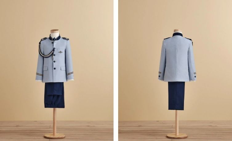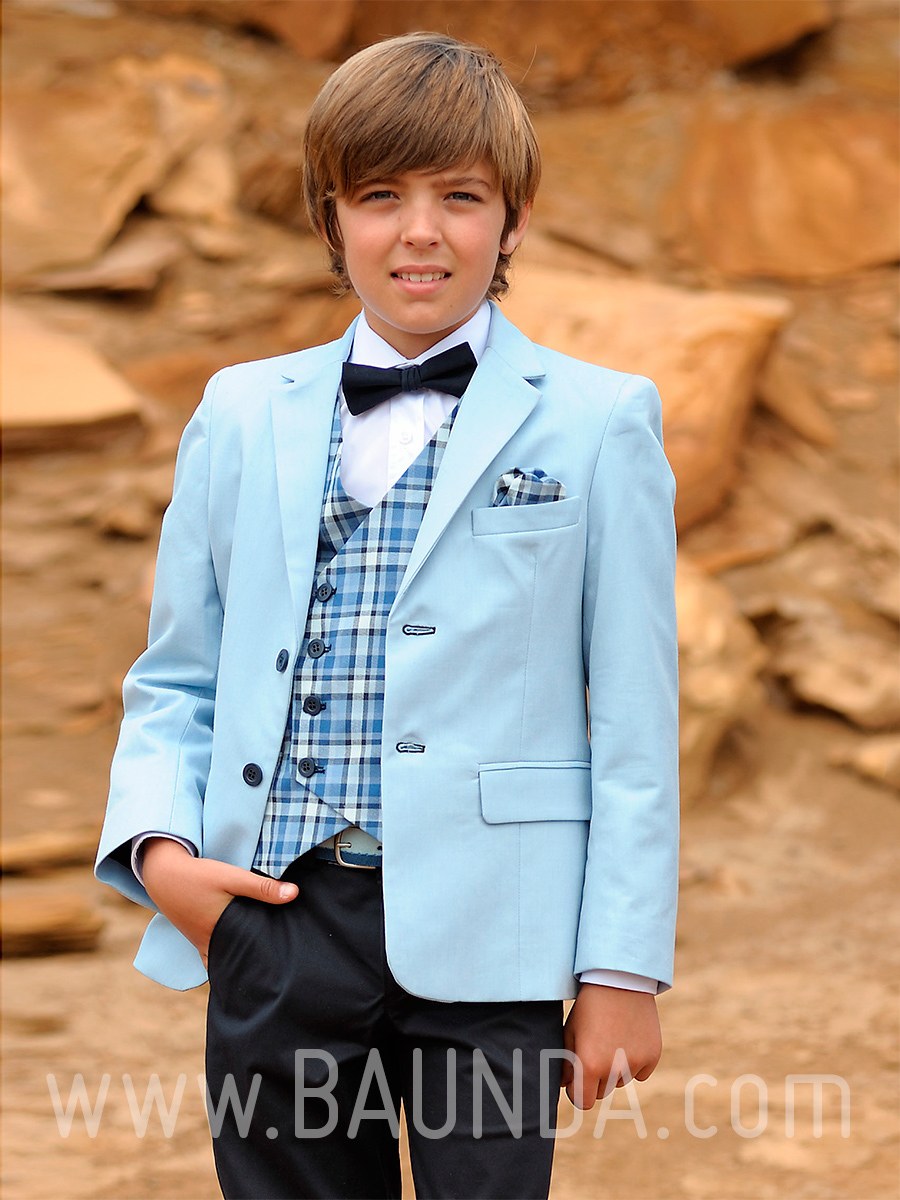 El modelo de traje sport 715 es un traje de Baunda que imita el estilo de los trajes para hombre, pero adaptado a los niños y con un color muy acertado en color azul suave que marca tendencia.
