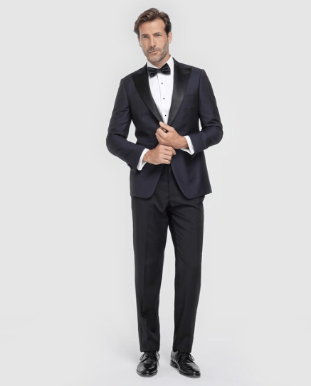 Si tienes una talla grande también puedes encontrar elegantes trajes de ceremonia para novio dentro de la colección de El Corte Inglés. Entre los mejores, este smoking clásico de color negro de la firma Emidio Tucci con chaqueta de solapas satinadas y pantalón con franja lateral.