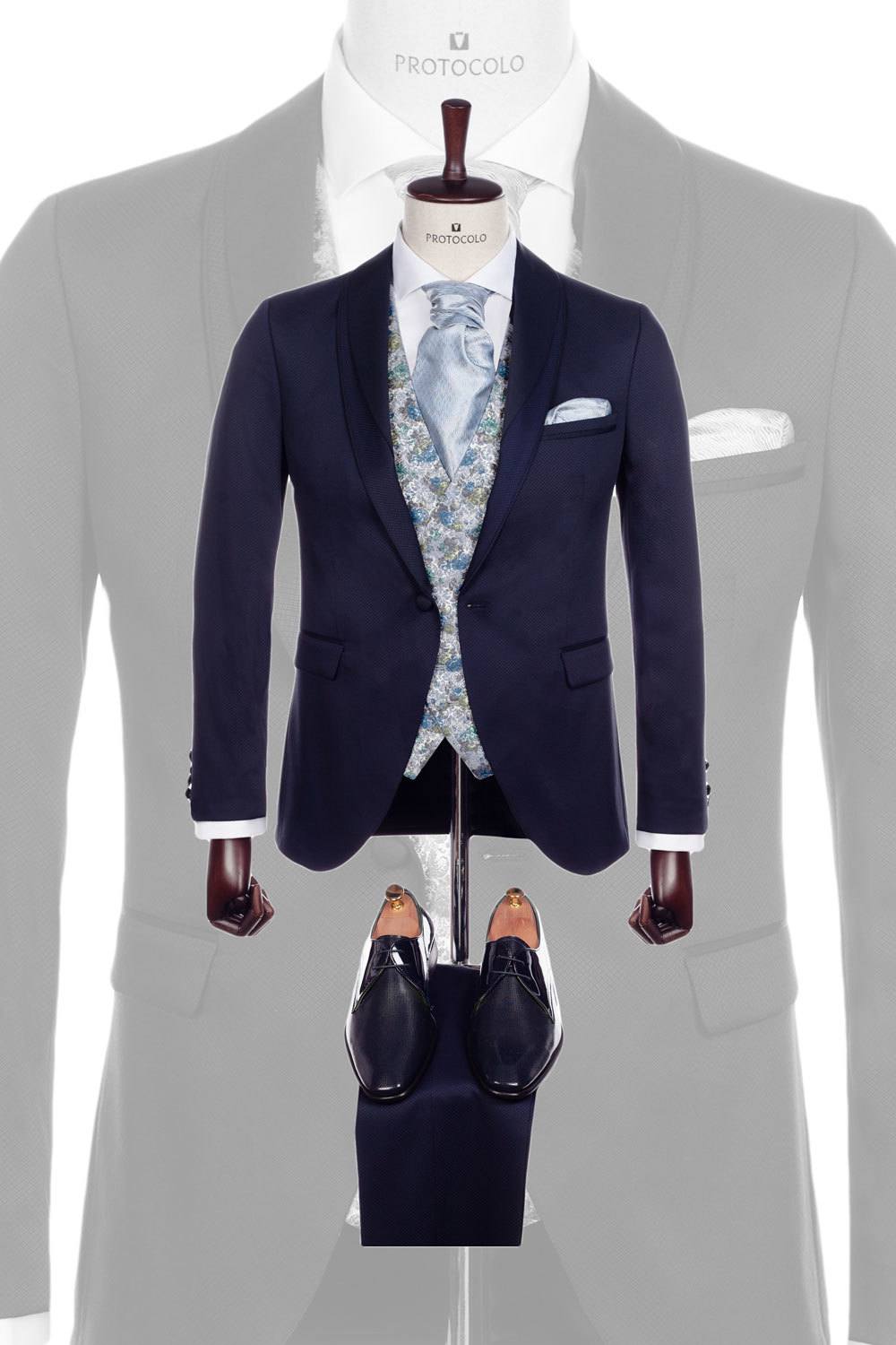 Traje de ceremonia regular azul con microdibujo de Emidio Tucci